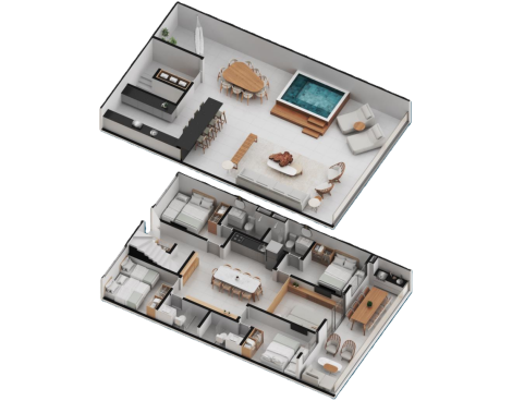 Amplas e luxuosas, as coberturas de 4 quartos proporcionam um espaço único e exclusivo para você viver momentos memoráveis.