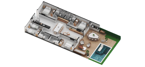 Espaços projetados para atender às necessidades mais exigentes, os apartamentos térreos de 4 quartos combinam sofisticação e funcionalidade em cada detalhe.
