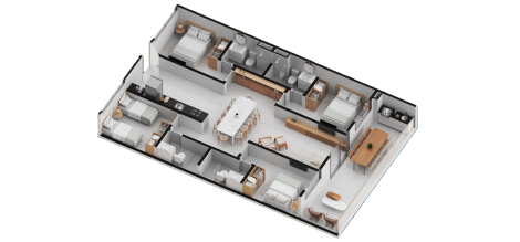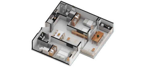Com ambientes planejados para otimizar seu dia a dia, os apartamentos tipo de 3 quartos oferecem um lar moderno e completo para a sua família.